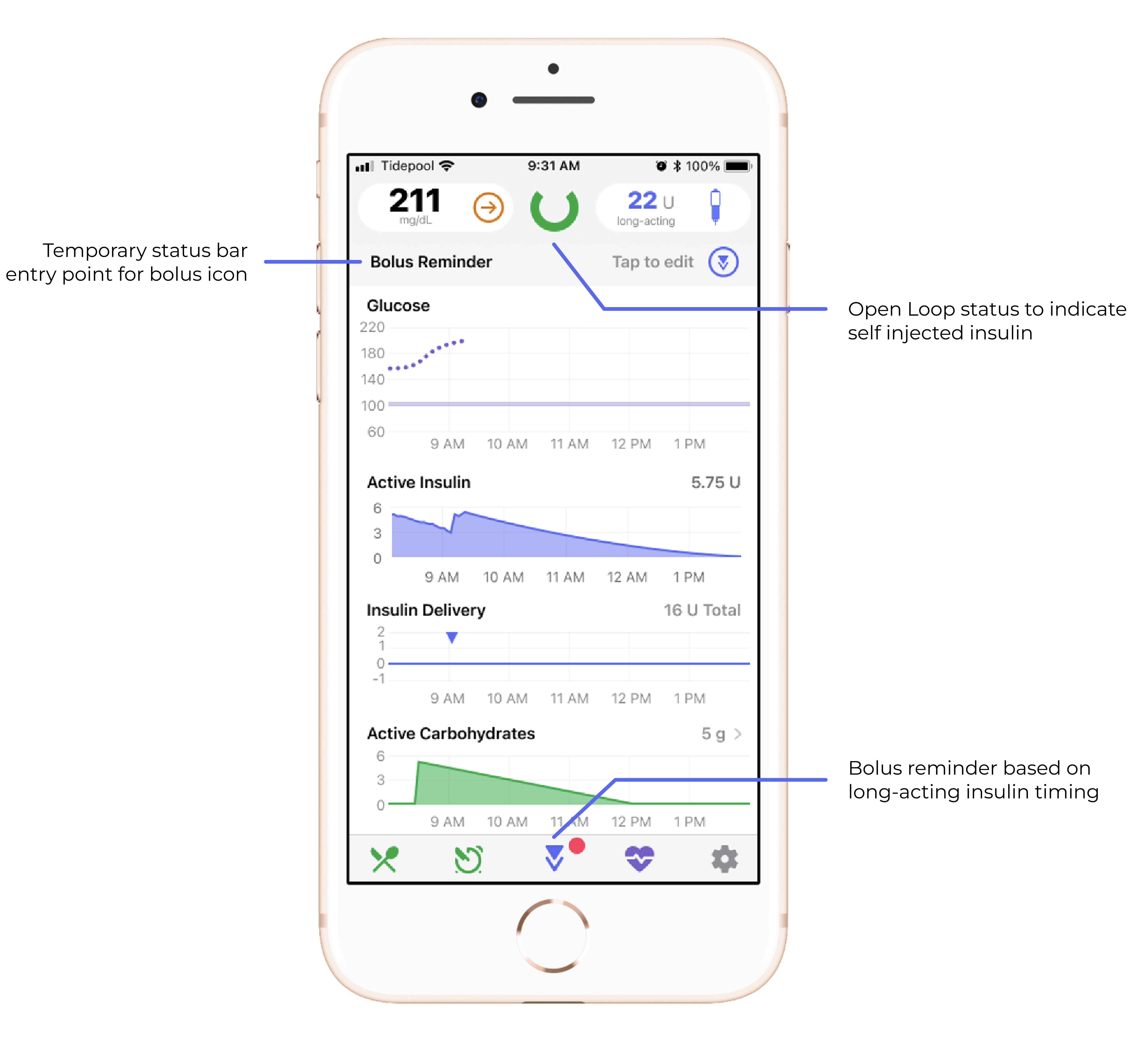 I created several blue-sky mockups to show how Tidepool Loop could be expanded for the Type 2 experience for potential device partners.